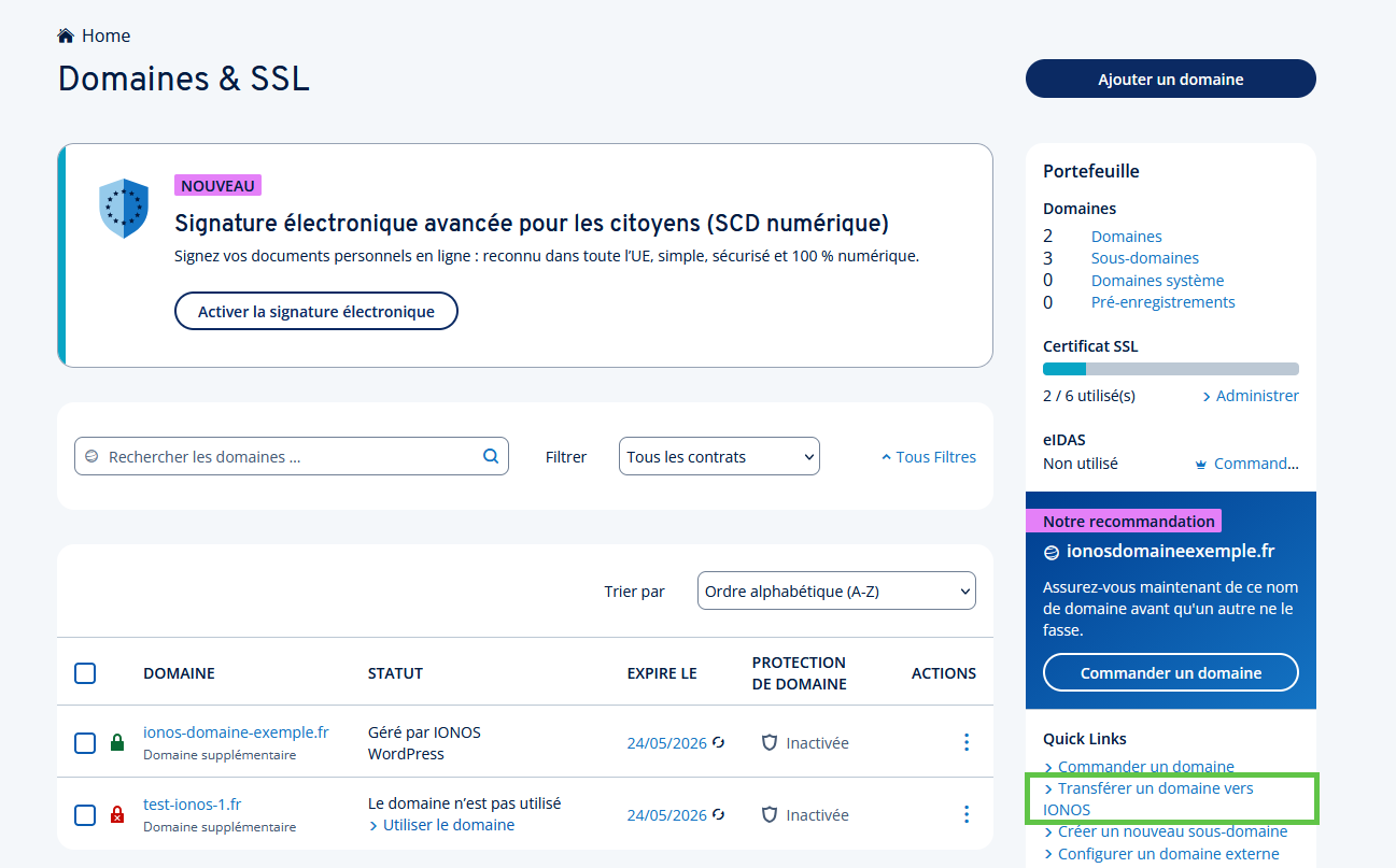 Transférer un domaine vers IONOS en étant déjà client IONOS