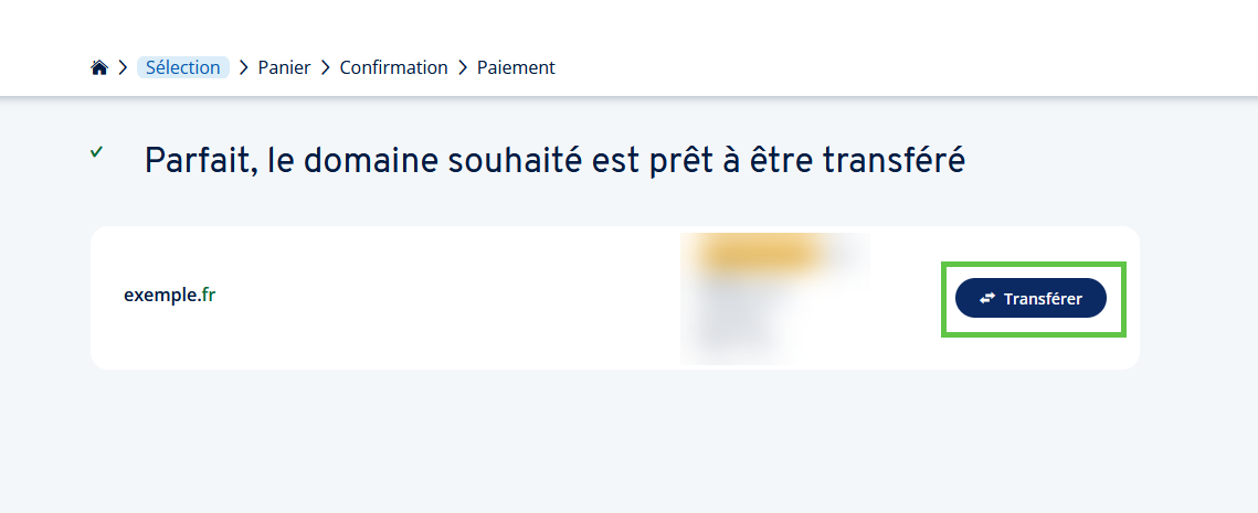 Si votre domaine n'est pas prêt à être transféré, lisez l'article suivant : Conditions pour un transfert de domaine réussi - Pour continuer, cliquez sur Transférer. Une fenêtre pop-up s'ouvre.