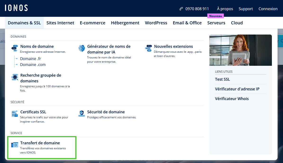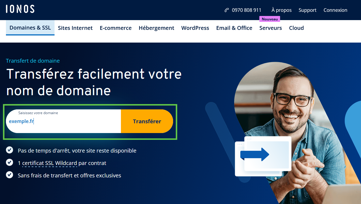 Si vous êtes déjà client(e), veuillez lire ici : Transférer un domaine vers IONOS en tant que client existant