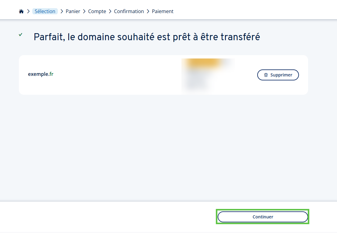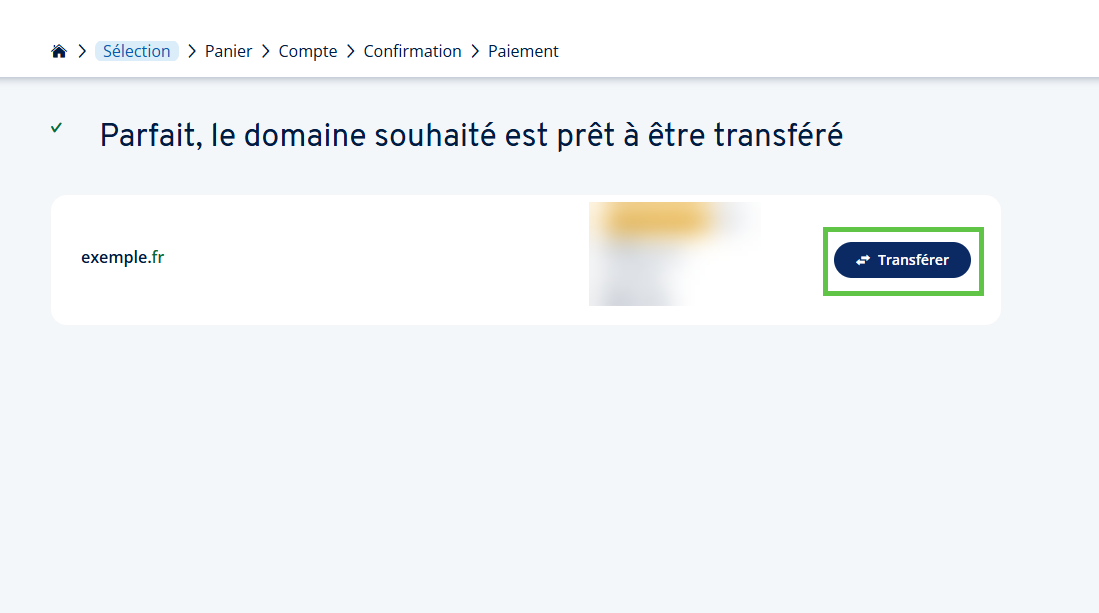 Si votre domaine n'est pas prêt à être transféré, veuillez lire l'article suivant du Centre d'Assistance : Conditions pour un transfert de domaine réussi