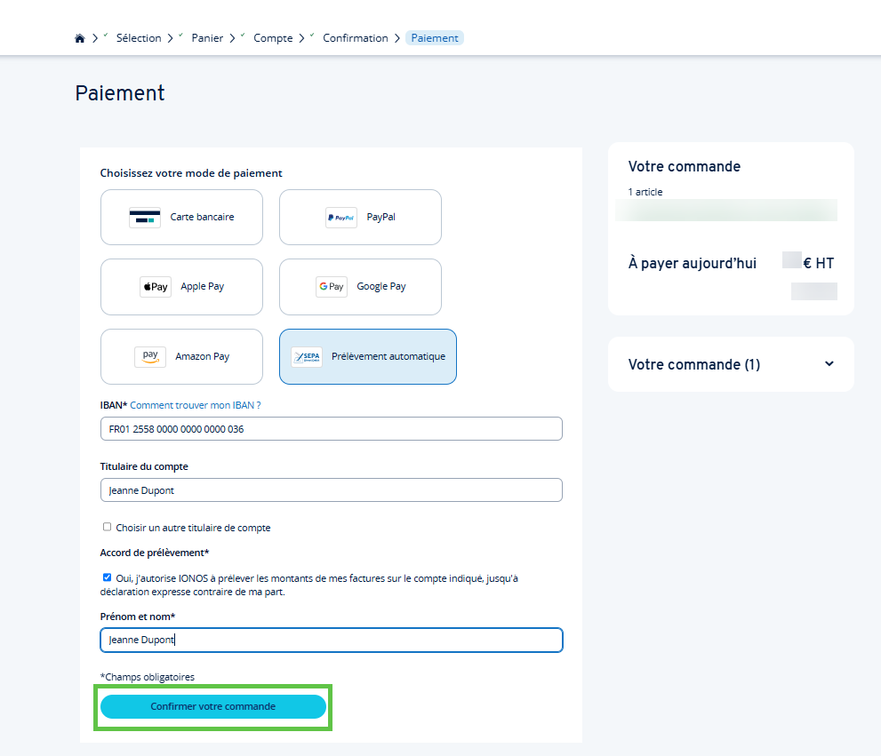 - Saisissez vos données client et définissez un mot de passe pour votre compte IONOS.