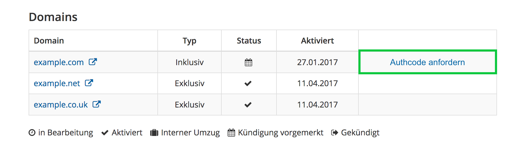 - Cliquez sur Demander un Authcode à côté du domaine que vous venez d'annuler.