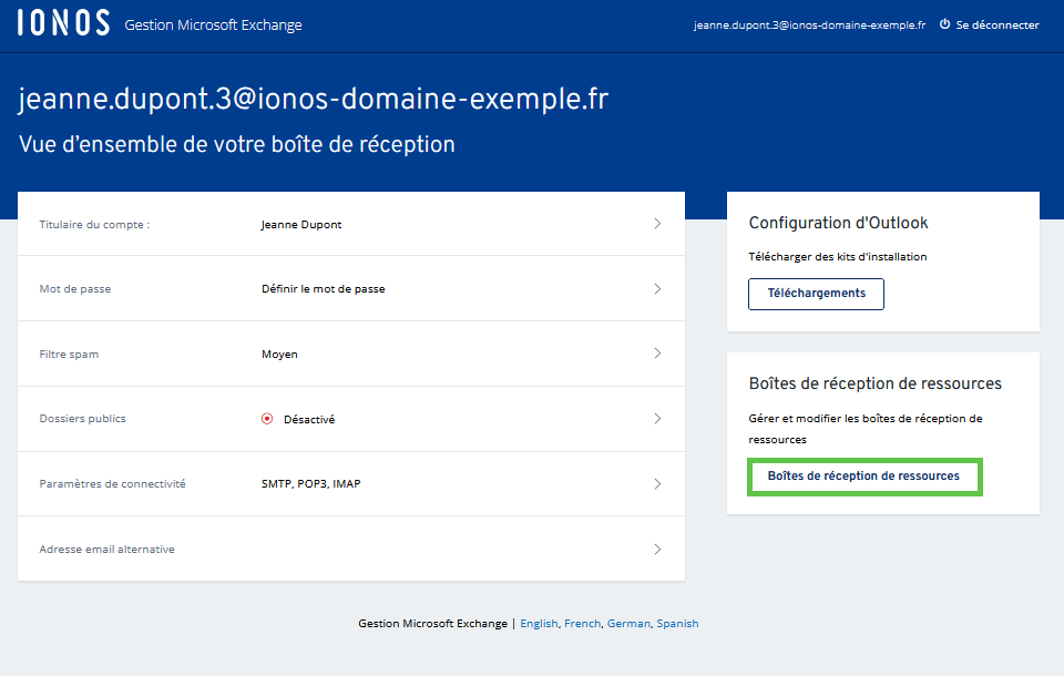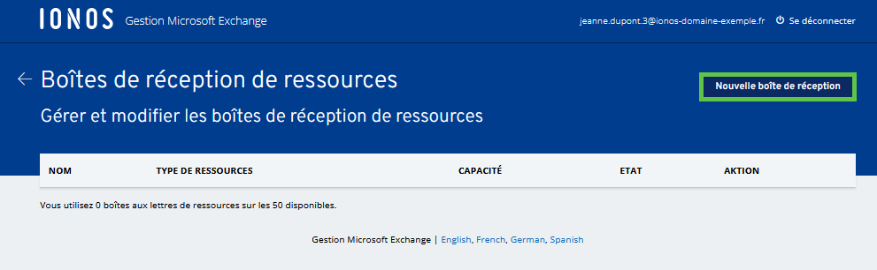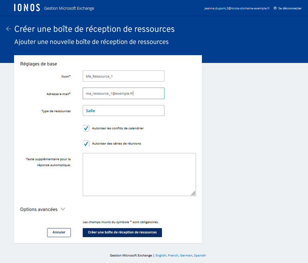 Saisissez l'adresse e-mail souhaitée pour la ressource.