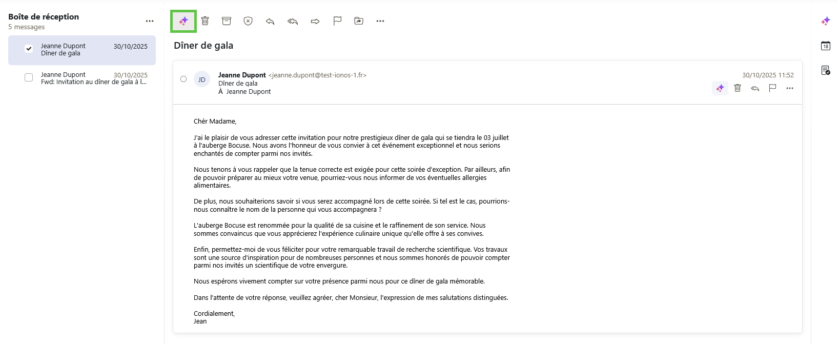 Webmail : Créer des textes avec l'Assistant email par IA