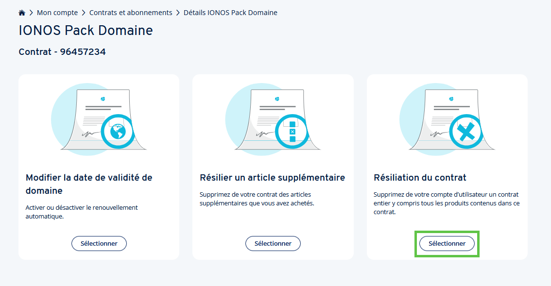 S'il n'y a pas d'autres contrats sous votre numéro de client, vous n'aurez plus accès à votre compte IONOS après l'entrée en vigueur de la résiliation.