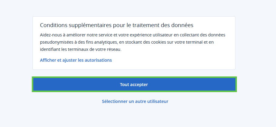 - Cliquez sur Accepter. La page Conditions supplémentaires pour le traitement des données s'affiche.