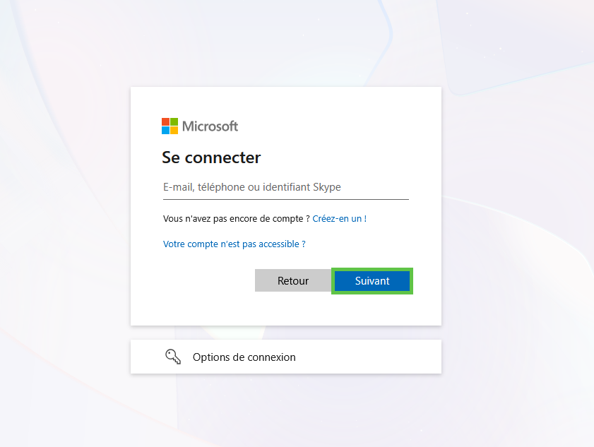 - Saisissez l'adresse e-mail du compte d'administration Microsoft 365 puis cliquez sur Suivant.