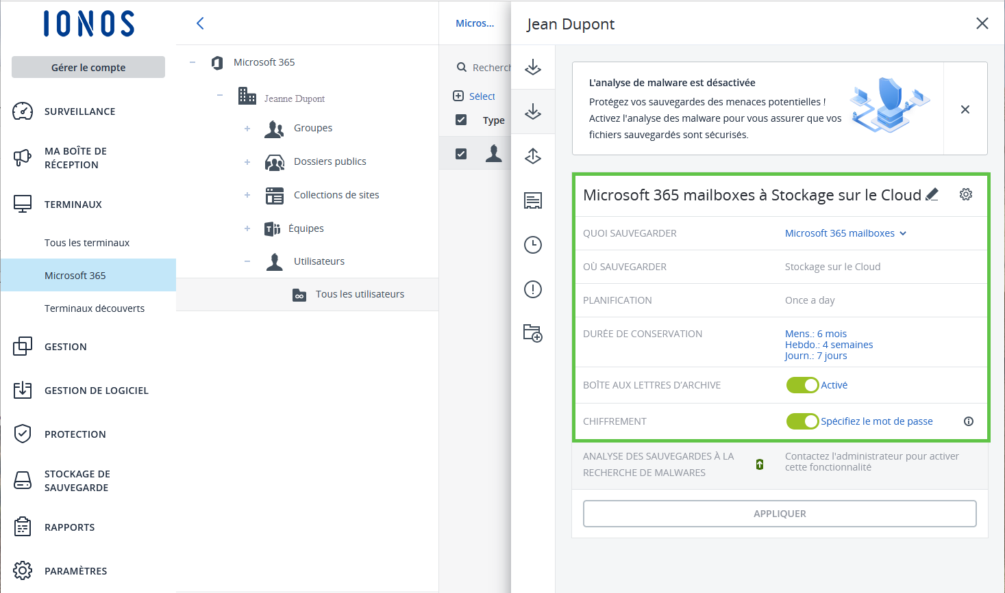- Créer un plan de protection pour un compte Microsoft 365