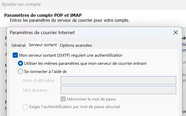 - Une fois sur place, passez à l’onglet « Serveur de courrier sortant ». Si la case « Le serveur de courrier sortant (SMTP) nécessite une authentification » n’est pas cochée, vous pouvez maintenant le faire pour activer l’authentification SMTP dans votre client Outlook. Utilisez également l’option « Utiliser les mêmes paramètres que pour les serveurs de boîtes de réception » pour qu’Outlook puisse fonctionner avec vos identifiants habituels. Si l’authentification est déjà activée, mais qu’un nom d’utilisateur et un mot de passe individuels différents de ceux de la connexion par défaut sont définis, vous devez également passer à l’option ci-dessus pour résoudre le message « 550 Relay not permitted »