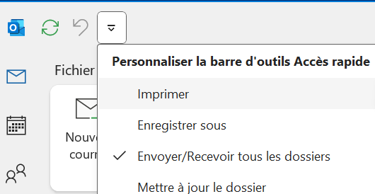 La manière la plus simple d’ajouter une icône « Imprimer » est d’ajouter l’accès rapide « Imprimer » à la barre d’outils tout en haut de la fenêtre d’Outlook.