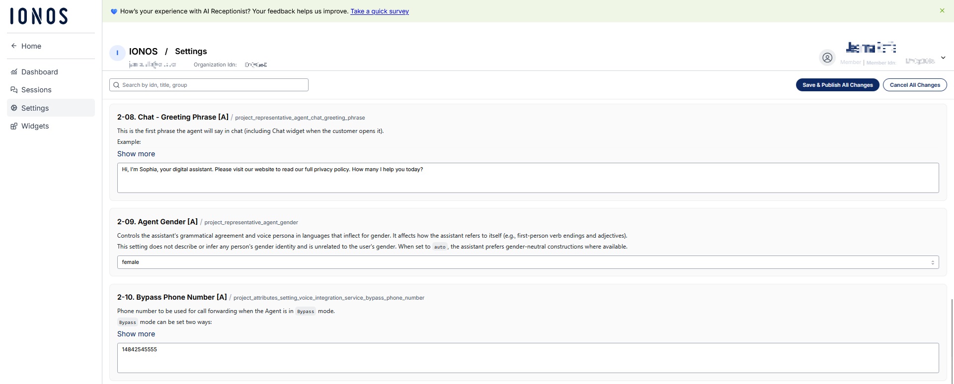Le réceptionniste IA de IONOS est une solution business prête à l’emploi qui permet d’automatiser la communication téléphonique non seulement via des annonces, mais aussi via de véritables dialogues. L’assistant répond aux appels 24 h/24 et 7 j/7, traite immédiatement les questions fréquentes pendant la conversation et peut être configuré selon les besoins de votre entreprise via un tableau de bord. Vous pouvez définir des questions de suivi, mettre en place des règles de transfert et intégrer vos collaborateurs dans le processus.