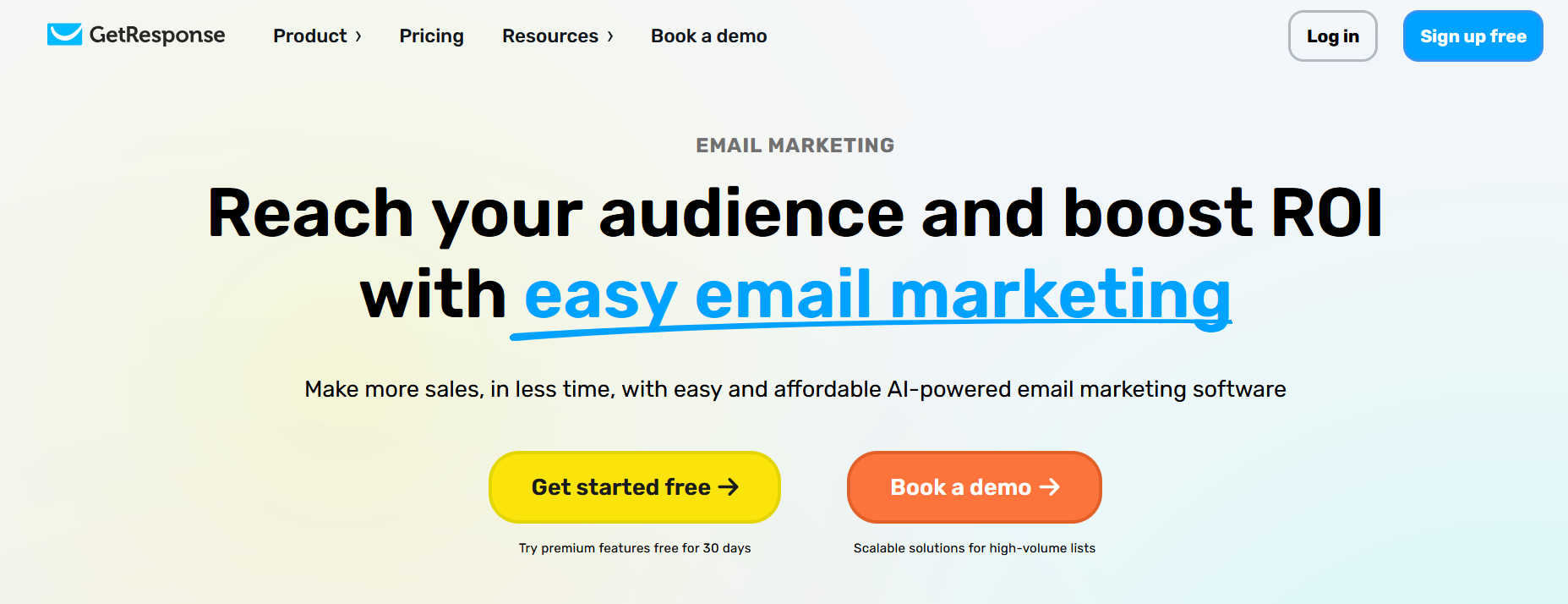 GetResponse est un outil d’emailing bien développé à l’international avec ses 24 langues différentes pour un total de 183 pays. En plus de son solide éditeur de newsletter, l’éditeur intégré pour les pages d’atterrissage est particulièrement convaincant. Une sélection de plus de 150 modèles et une multitude de photos iStock gratuites offre aux utilisateurs des options de conception presque illimitées. Avec l’affichage mobile disponible, vous pouvez également avoir un bon aperçu de l’aspect de votre newsletter sur les appareils mobiles. Un suivi du taux d’ouverture et de clics ainsi que de Google Analytics sont également disponibles. En plus de Salesforce, SugarCRM et Zoho CRM, des solutions E-commerce telles que WooCommerce et PayPal peuvent également être connectées à la solution d’emailing.
