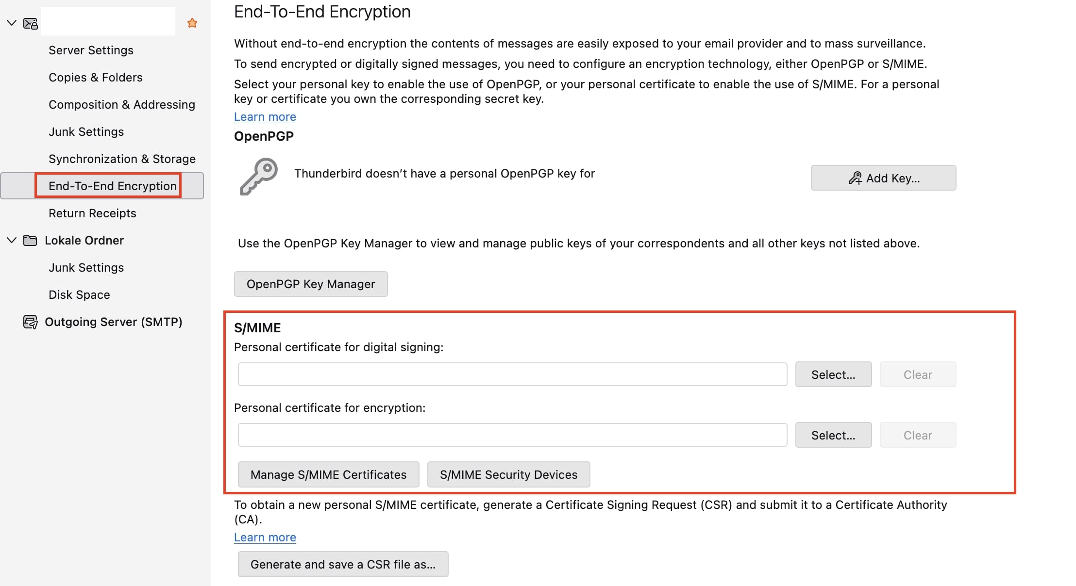 Si vous souhaitez utiliser S/MIME sur un PC Windows sans investir dans Outlook ou Microsoft Office, vous pouvez vous tourner vers Thunderbird, l’alternative gratuite développée par Mozilla, également à l’origine du navigateur Firefox. Si le client n’est pas encore installé et qu’aucun compte n’a été configuré, commencez par le faire. Ensuite, procédez ainsi pour activer le chiffrement et la signature S/MIME sur ce compte :