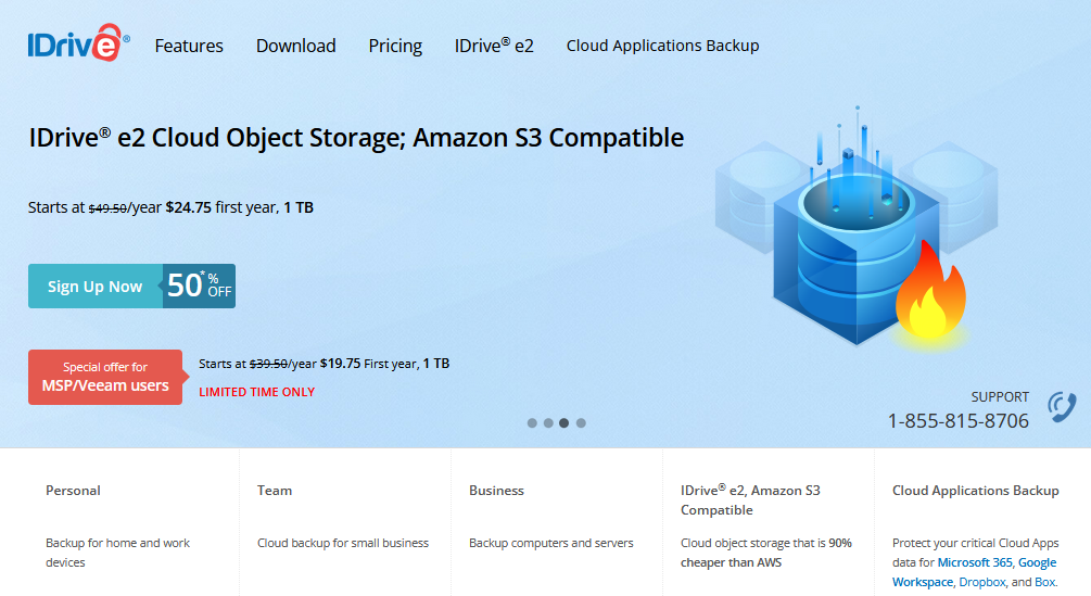 Même si le nom le suggère, IDrive n’a rien à voir avec Apple ou le système de BMW. Si vous optez pour un plan de sauvegarde de la firme américaine, tous les appareils peuvent être couverts avec un seul forfait. Toutefois, vous devez sélectionner la capacité de stockage requise à l’avance. Les options de stockage vont de 250 Go à 10 To pour les particuliers, les équipes et les entreprises.