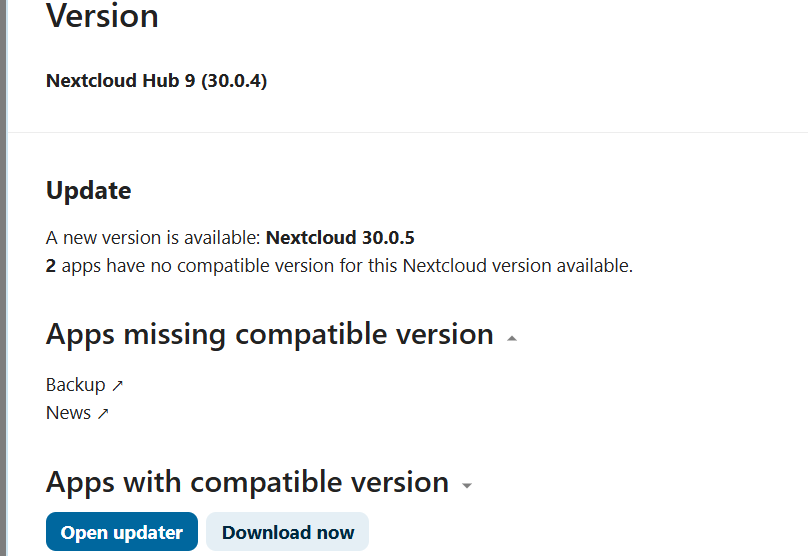 Une update Nextcloud correspond à la mise à jour du logiciel Cloud vers une version supérieure. Avant d’effectuer une mise à jour de Nextcloud, vous devez effectuer une sauvegarde et s’assurer de la compatibilité des applications tierces. Ces mises à jour peuvent être effectuées soit par l’Updater intégré, soit manuellement.