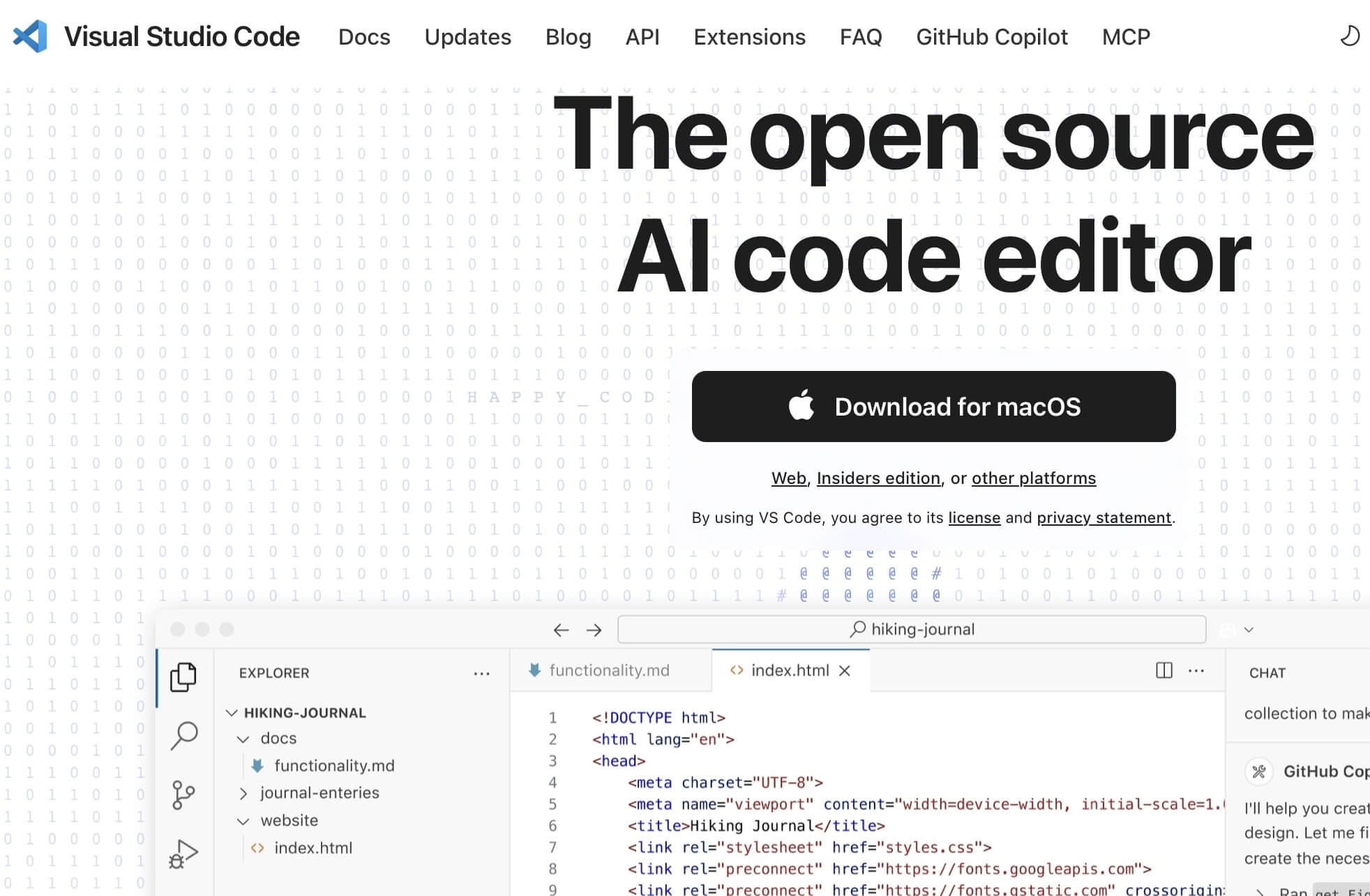 Visual Studio Code, souvent abrégé en VS Code, est un éditeur de code open source développé par Microsoft. Depuis sa sortie en 2015, il s’est rapidement imposé comme l’un des environnements de développement les plus populaires au monde. En tant qu’alternative gratuite et multiplateforme à Dreamweaver, l’éditeur séduit par sa flexibilité, sa structure modulaire et le dynamisme de sa communauté. Compatible avec Windows, macOS et Linux, VS Code propose dès sa version de base de nombreuses fonctionnalités adaptées aux besoins des développeurs Web modernes. Celles-ci incluent notamment la prise en charge intégrée de Git, la coloration syntaxique, la complétion intelligente du code (via IntelliSense), un terminal intégré et un aperçu en direct grâce à des extensions adaptées.