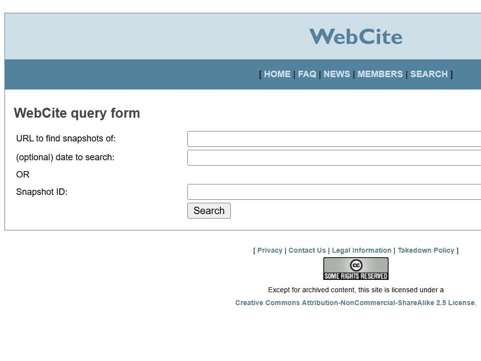 WebCite permet d’accéder à des sites Web déjà archivés et de les citer comme sources fiables. Toutefois, le service n’accepte plus de nouvelles demandes d’archivage. Les instantanés existants restent accessibles et peuvent toujours être utilisés comme références. Vous pouvez ainsi retrouver d’anciennes versions de sites Web et consulter d’anciennes pages Internet.