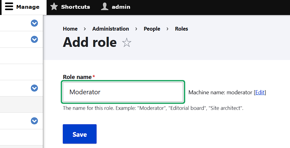 Pour ajouter un nouveau groupe, cliquez sur « Ajouter un rôle », saisissez un nom évocateur, puis validez avec « Enregistrer » :