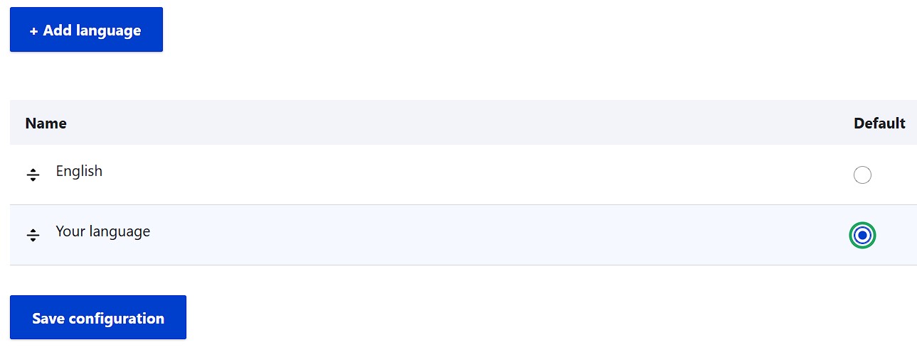 Une fois ces modules activés, ouvrez le menu « Configuration » puis, dans la catégorie « Regional and language », cliquez sur « User interface translation ».