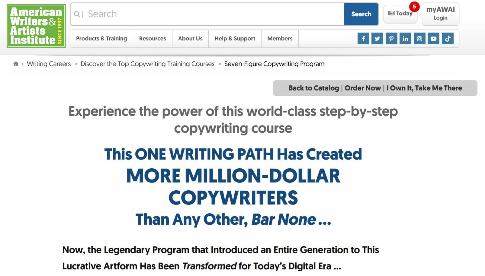 Toute personne qui cherche l’inspiration pour concevoir une landing page pourra trouver des idées sur le site de l’American Association for Writers (AWAI). L’association pour copywriter fait la publicité de ses cours en utilisant des landing pages classiques :