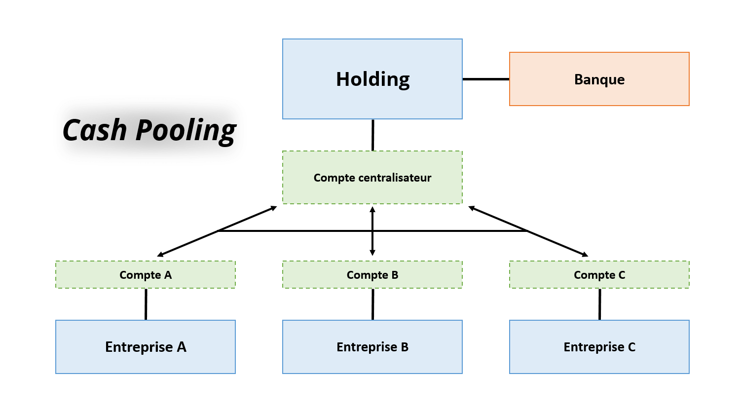 Souvent, les demandes de liquidités effectuées auprès des banques peuvent paraître illogiques si l’on prend en compte le niveau global des liquidités au sein d’un groupe : alors qu’une filiale doit contracter un prêt à des taux d’intérêt élevés, une autre ne va recevoir que quelques faibles intérêts de ses investissements financiers. Pour remédier à cette situation, le groupe peut mettre en œuvre un système de cash pooling. Il est géré généralement par un système central de gestion financière organisé par la société mère.