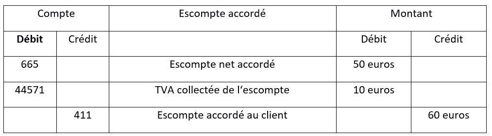 Escompte = montant brut x taux d’escompte Montant du nouveau paiement = montant brut - escompte