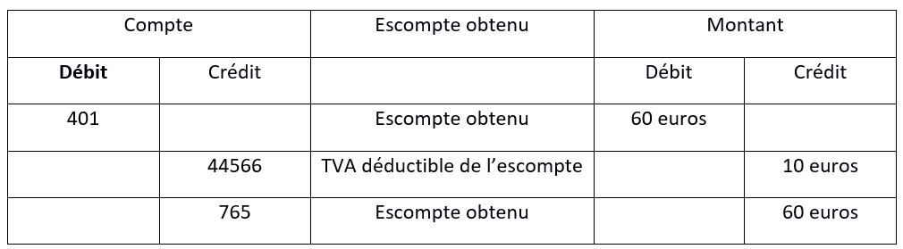 L’escompte obtenu doit être crédité au compte 765 « escomptes obtenus ».