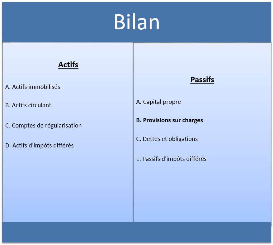 Dans la mesure où il s’agit de sommes qui devront être dépensées sans contrepartie pour l’entreprise, les provisions figurent dans la colonne des passifs.