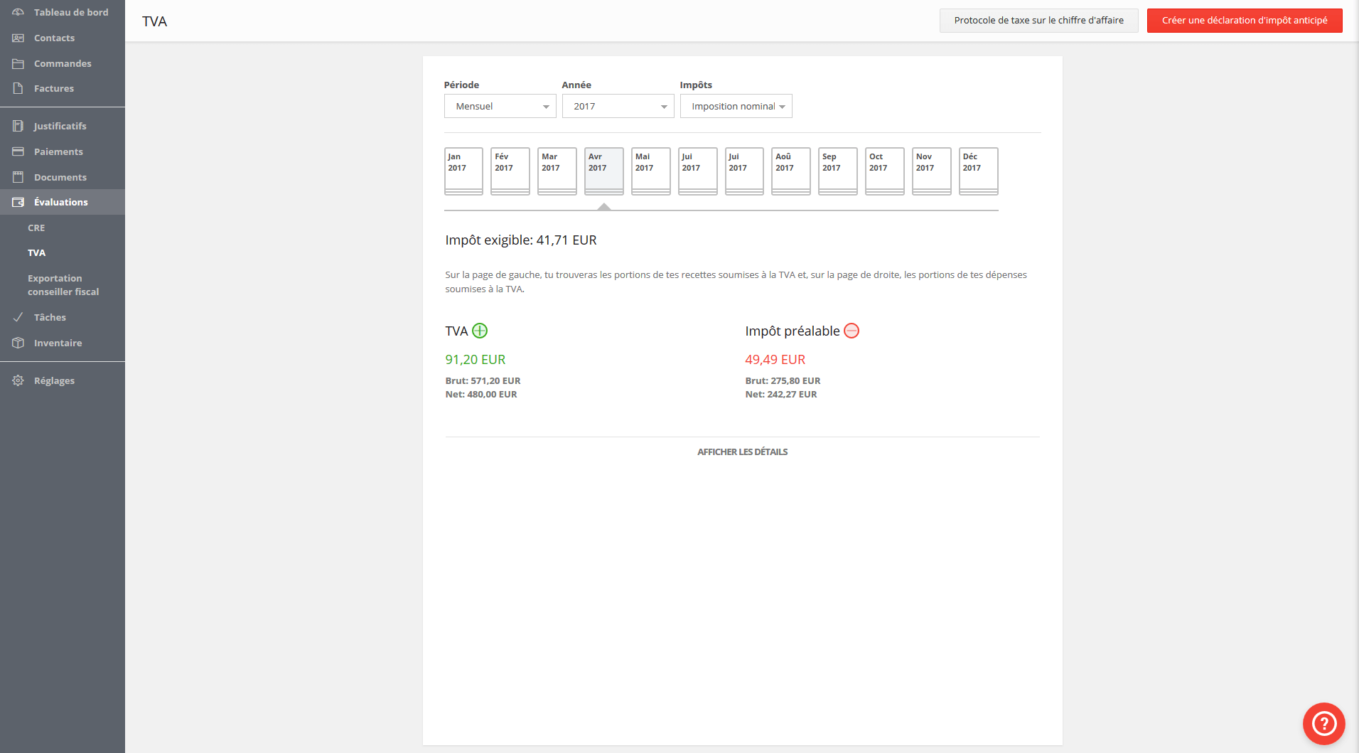 Déclaration préalable de TVA sur CA