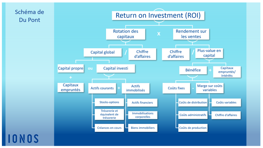 Comme un élément central du modèle Du Pont, le retour sur investissement (ROI) désigne d’une part la rentabilité des capitaux propres (Return on Equity ; ROE) et, d’autre part, la rentabilité des actifs (Return on Assets ; ROA), composés des capitaux propres et empruntés.