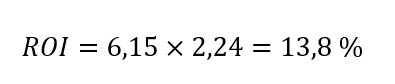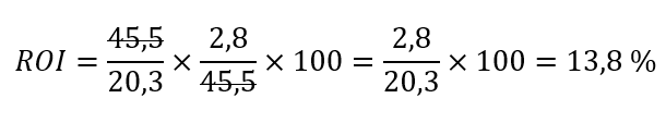 Si on multiplie la marge d’exploitation par la rotation de capital, on obtient pour la période comptable donnée, un ROI de 13,8 %.
