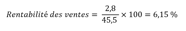 Pour bien comprendre comment calculer le ROI, commençons par déterminer la marge d’exploitation de l’entreprise. Pour cela, nous allons diviser la marge réalisée par le chiffre d’affaires net, et multiplier ce résultat par 100 pour obtenir un taux. Pour l’entreprise de notre exemple, on obtient une marge d’exploitation de 6,15 %.