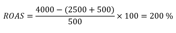 Imaginez que vous êtes propriétaire d’un magasin en ligne, et que vous souhaitez faire référencer vos produits dans les moteurs de recherche. L’achat de vos articles entraîne un coût à hauteur de 2 500 €, avec lequel vous allez engendrer un chiffre d’affaires de 4 000 €. Les annonces Ads vous coûtent 500 €.