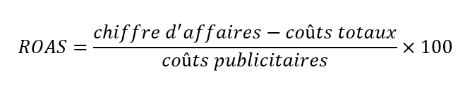 Vous pouvez calculer le ROI de votre marketing en divisant la part de bénéfice par vos frais de publicité, et en multipliant ce résultat par 100. C’est d’ailleurs la fonction de la formule dite ROAS (Retour sur dépenses publicitaires). Elle permet de calculer spécifiquement la rentabilité des dépenses publicitaires