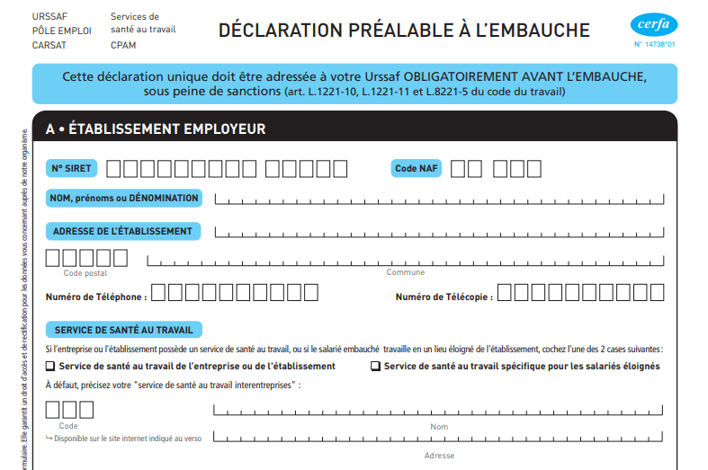 Les délais sont très stricts et courts : la déclaration préalable à l’embauche doit impérativement être effectuée dans les 8 jours avant l’embauche et avant la prise de poste effective.