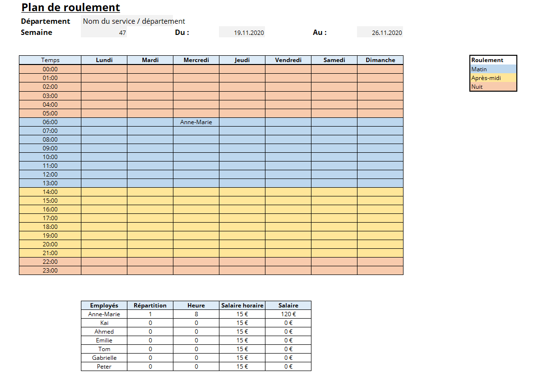 Votre modèle de plan de roulement est maintenant entièrement adapté et peut être utilisé pour votre future déploiement du personnel.