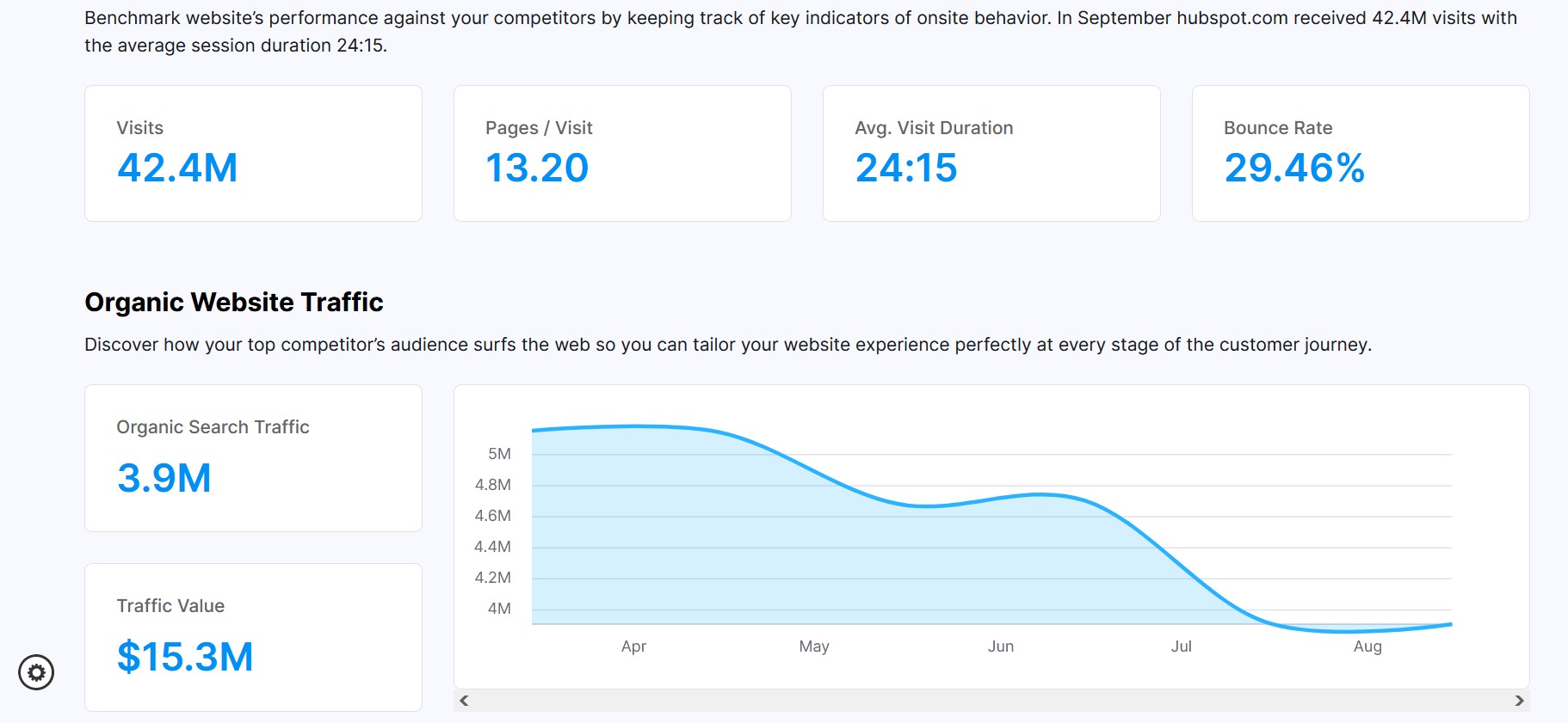 Le trafic d’un site Web est un indicateur clé de la popularité de ses contenus et de ses offres. Pour le responsable d’un site Web, cet indicateur permet aussi d’évaluer le volume de trafic nécessaire pour atteindre des résultats comparables. Supposons que vous souhaitiez lancer un blog rentable sur un sujet donné. Il est alors essentiel de connaître le trafic généré par les blogueurs les plus performants de ce secteur. Une analyse concurrentielle approfondie vous aide à identifier les stratégies qui fonctionnent chez vos concurrents et à en tirer des enseignements applicables à votre propre site Web.
