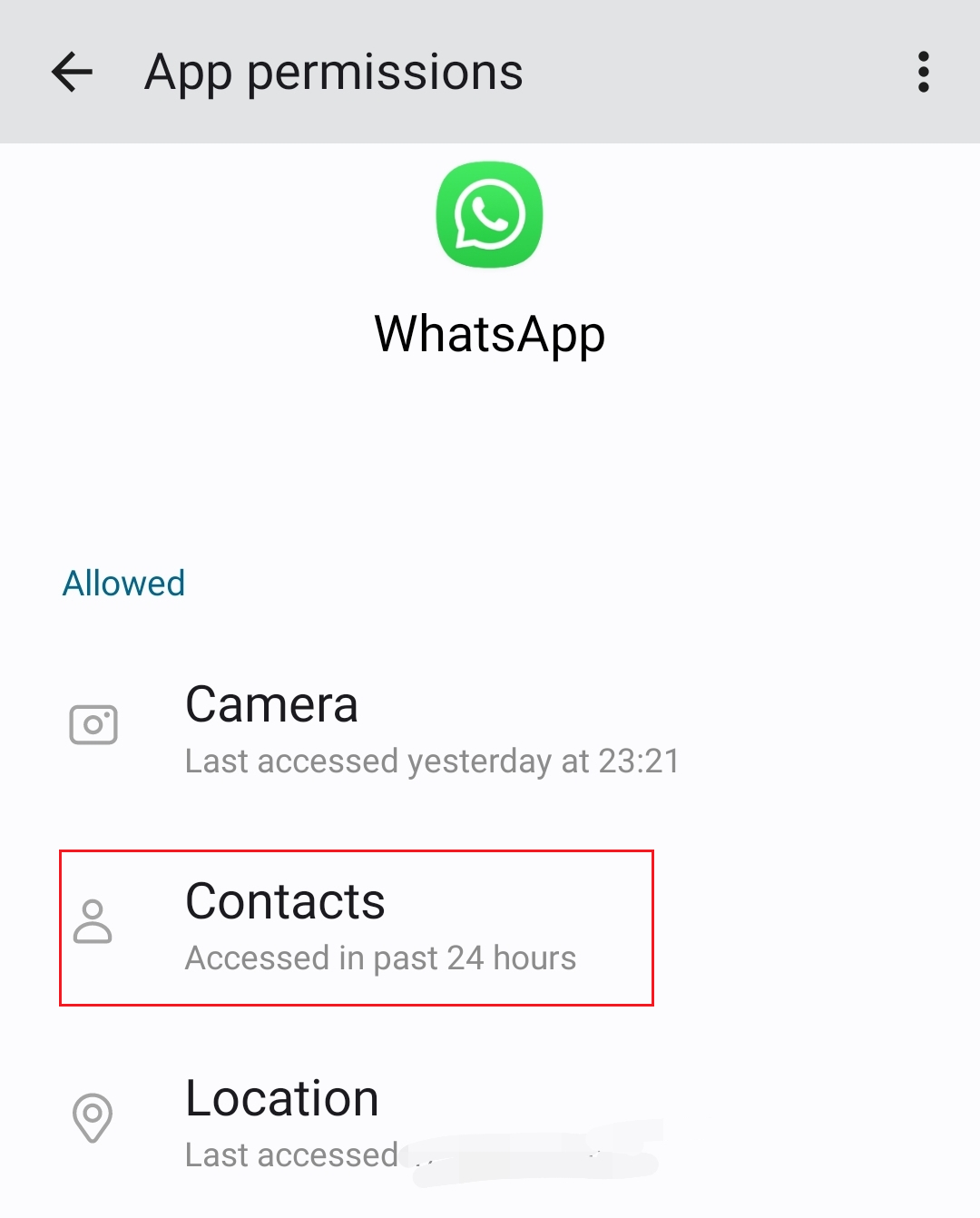 Une autre raison de la disparition de contacts peut être dû aux autorisations WhatsApp sur votre appareil. En effet, pour accéder aux contacts, vous devez donner l’autorisation d’accès correspondante à l’application.