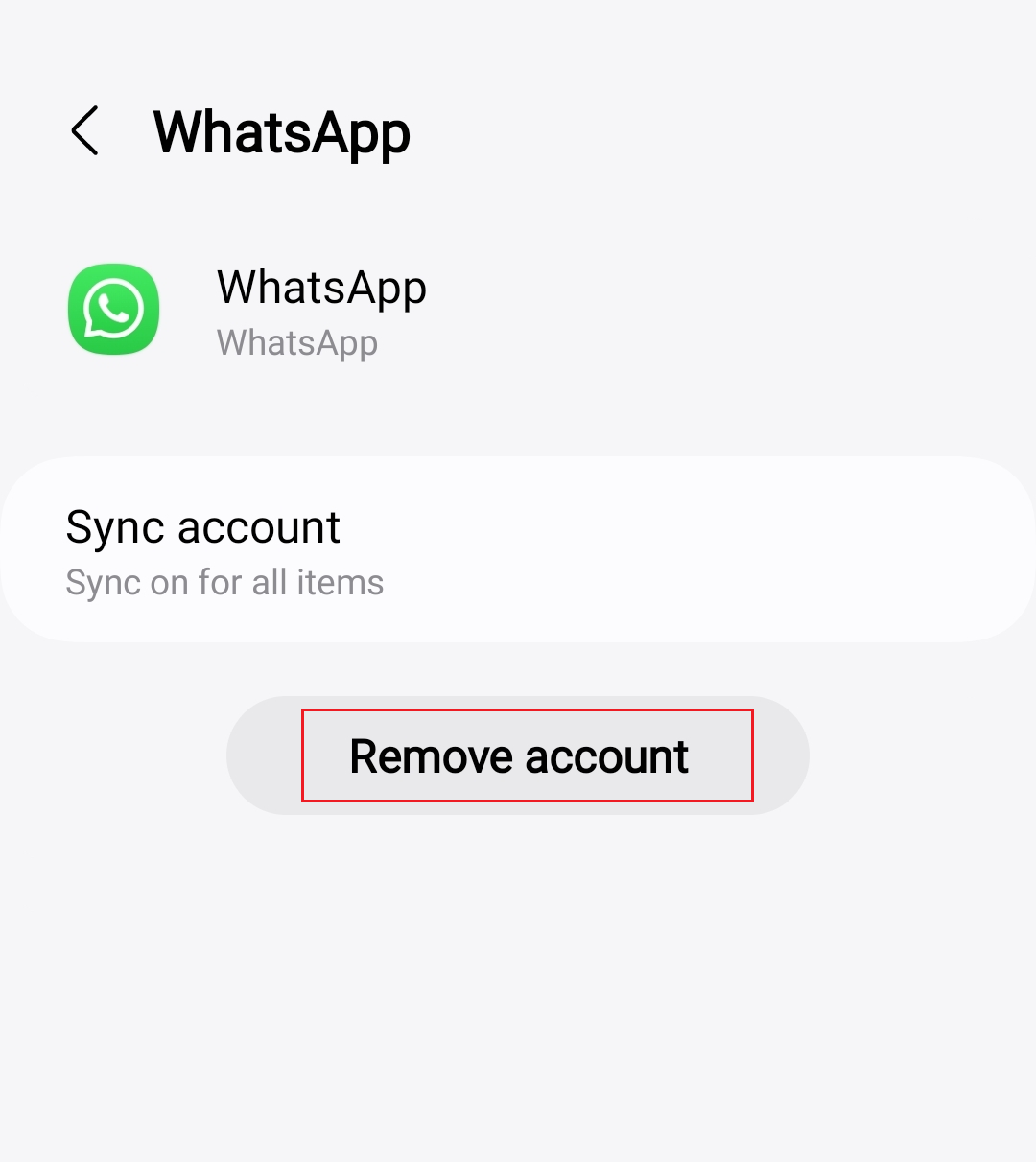 Si des contacts manquent toujours ou si WhatsApp ne fonctionne pas, supprimez le compte WhatsApp de la gestion des comptes de l’appareil. Sur un appareil Android, procédez comme suit :
