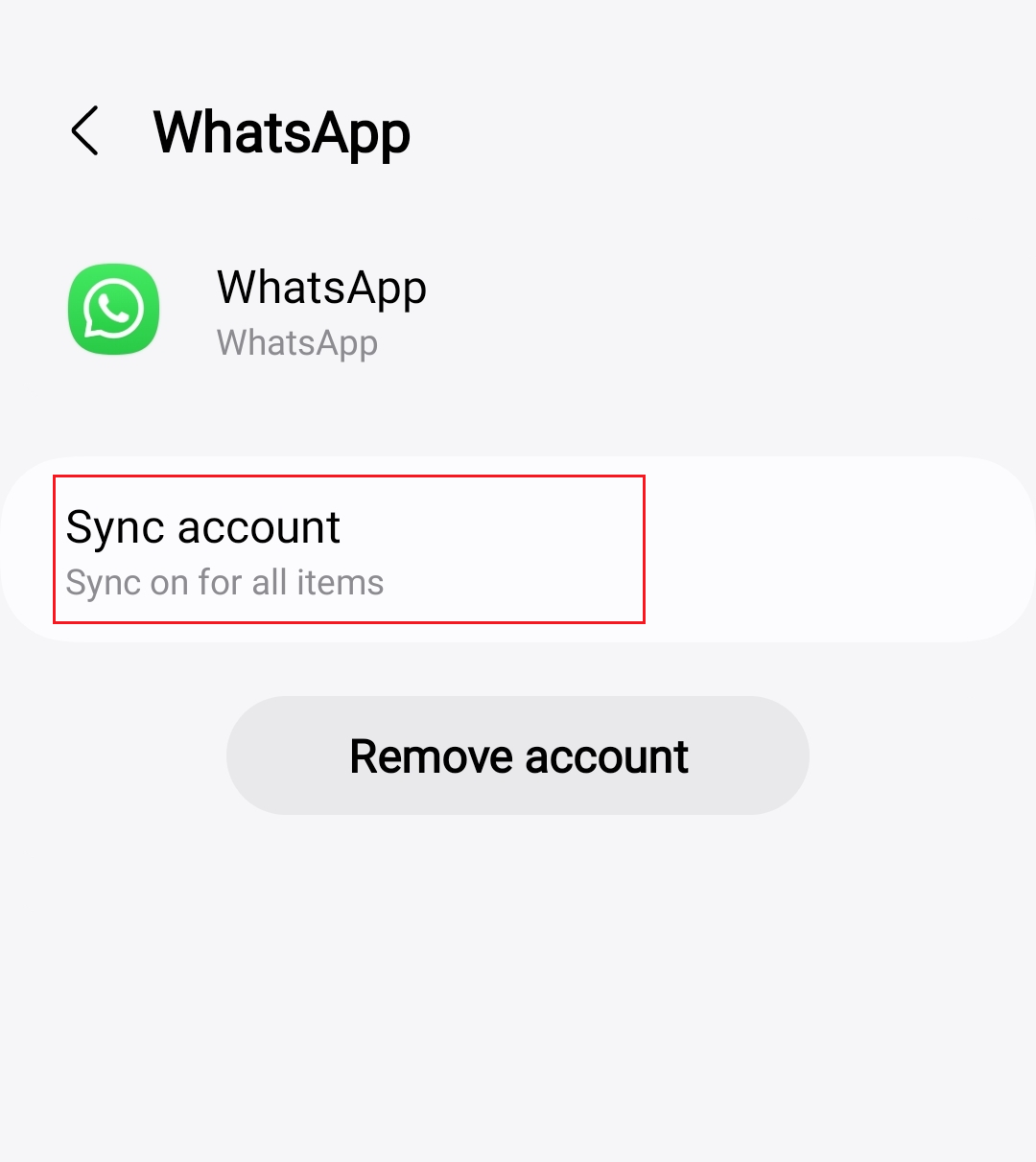 - Sélectionnez WhatsApp et tapez sur « Synchronisation du compte ».