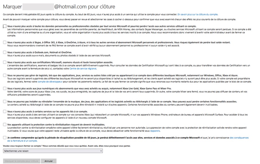 Pour clôturer votre compte Microsoft et ainsi les données de votre ancien compte Skype, suivez ces étapes :