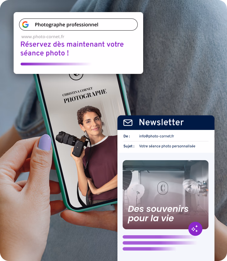 Nos professionnels du design, de la rédaction de textes et du référencement créent votre site Web sur mesure : moderne, professionnel et performant.